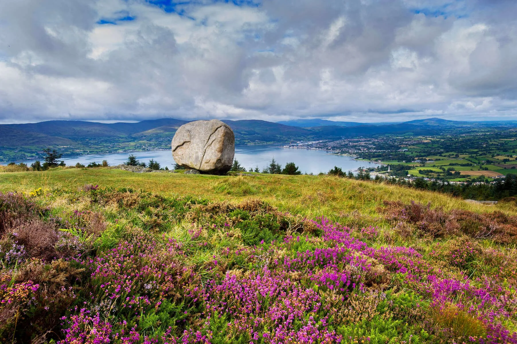 Local legend tells that it was hurled from the Cooley Mountains across the lough by the mighty Fionn mac Cumhaill, Ireland’s legendary giant, during a battle with his Scottish rival, Benandonner. The stone still rests there today, watching over the village and offering spectacular views across the lough and the Mournes.